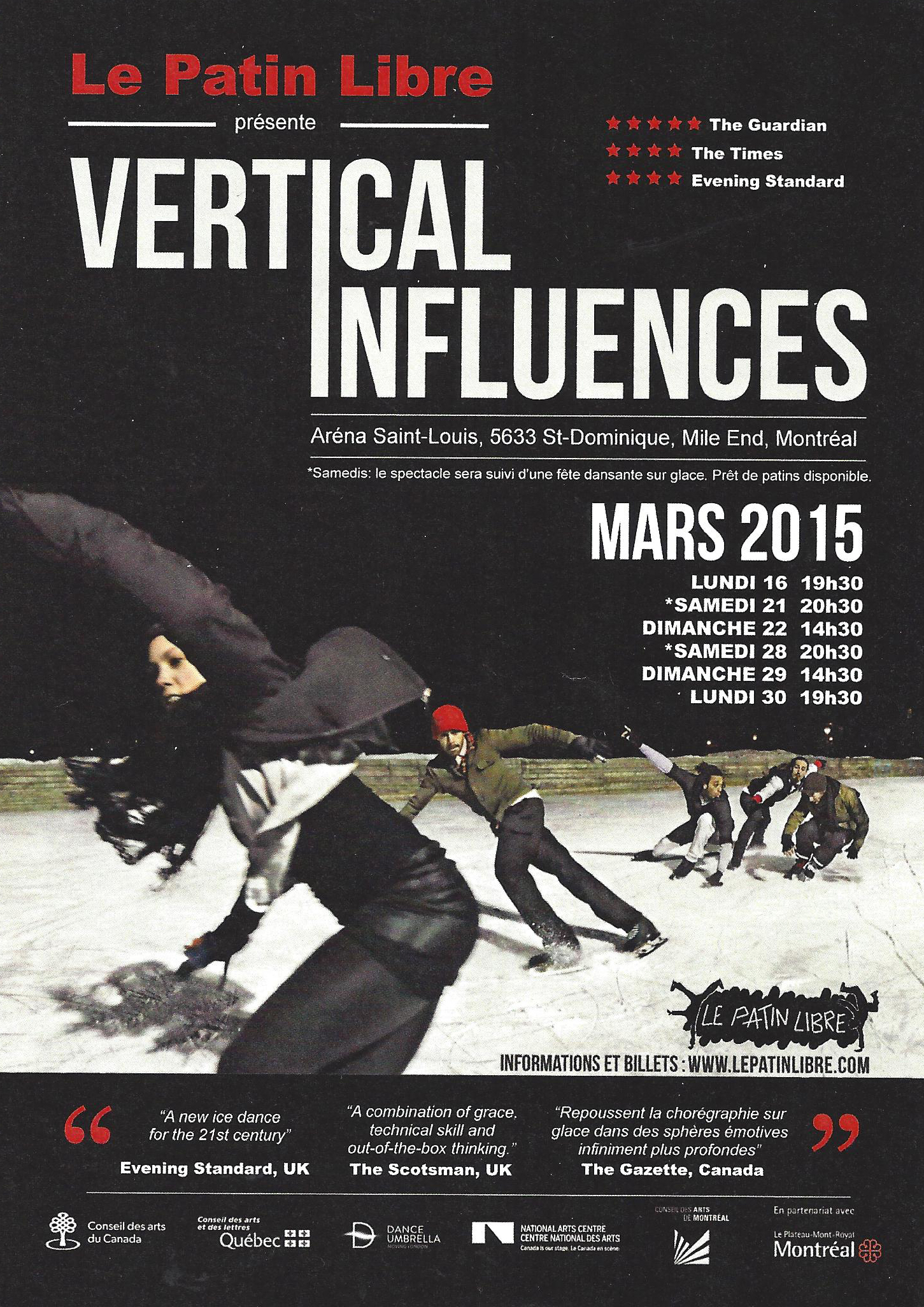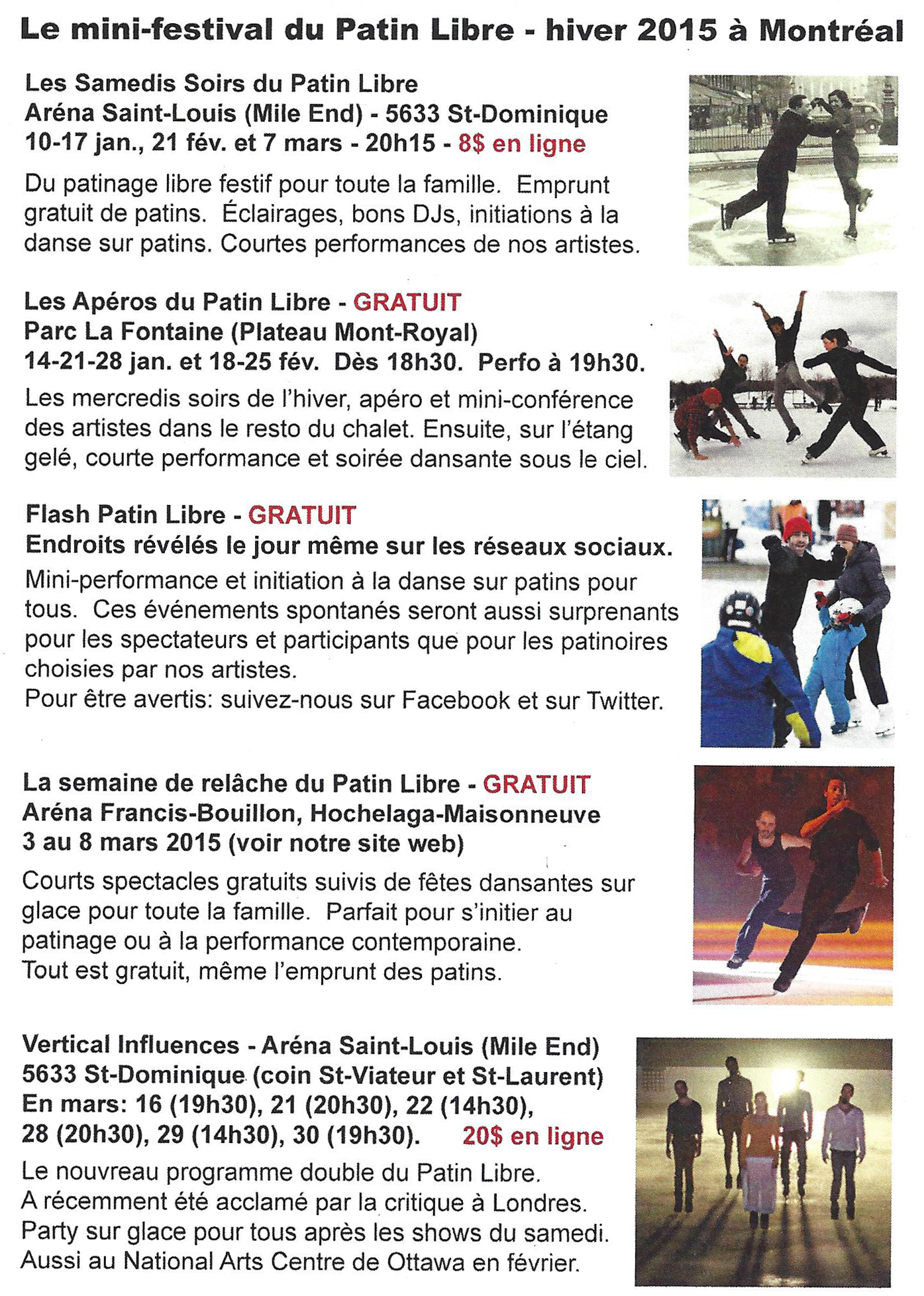 Les festivités de l’hiver ne sont pas finies. À ne pas manquer ! Spectacle Vertical Influences par Le Patin Libre et leurs activités du mois de mars. Venez en grand nombre. Voir les affiches ci-dessous.