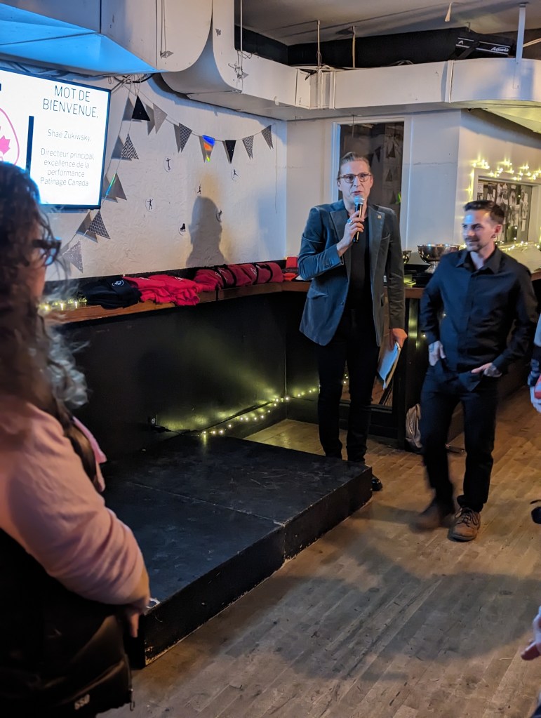 Au cours de la soirée, nous vous avons réservé des présentations spéciales, le dévoilement officiel de notre nouveau logo et plusieurs prix à faire tirer. Le Directeur principal d’excellence de la performance Patinage Canada, Shae Zukiwsky, nous a même préparé un mot de bienvenue de bienvenue. C’était le moment de troquer nos vêtements de patin contre nos habits les plus chics et de nous rassembler pour célébrer !