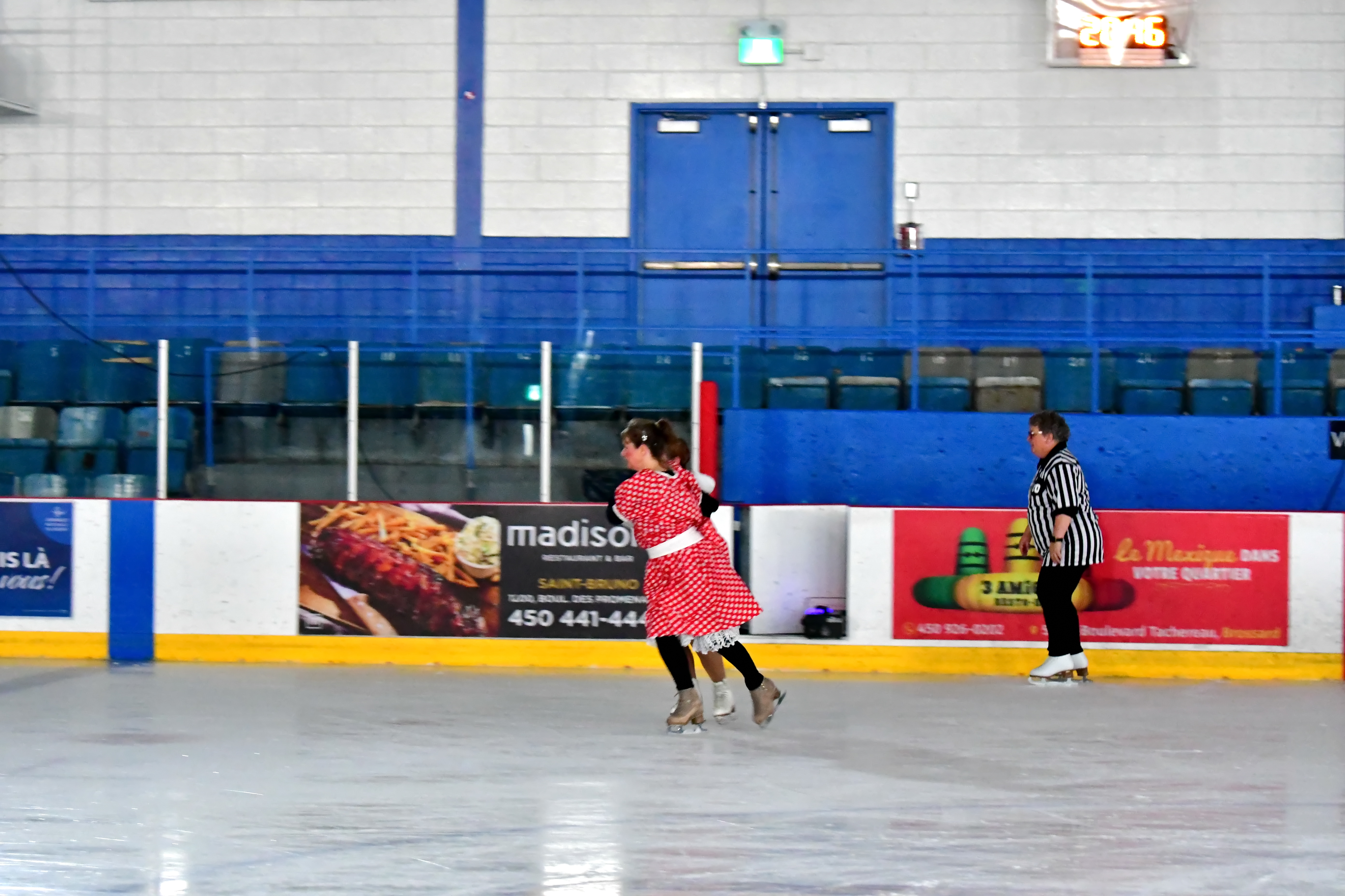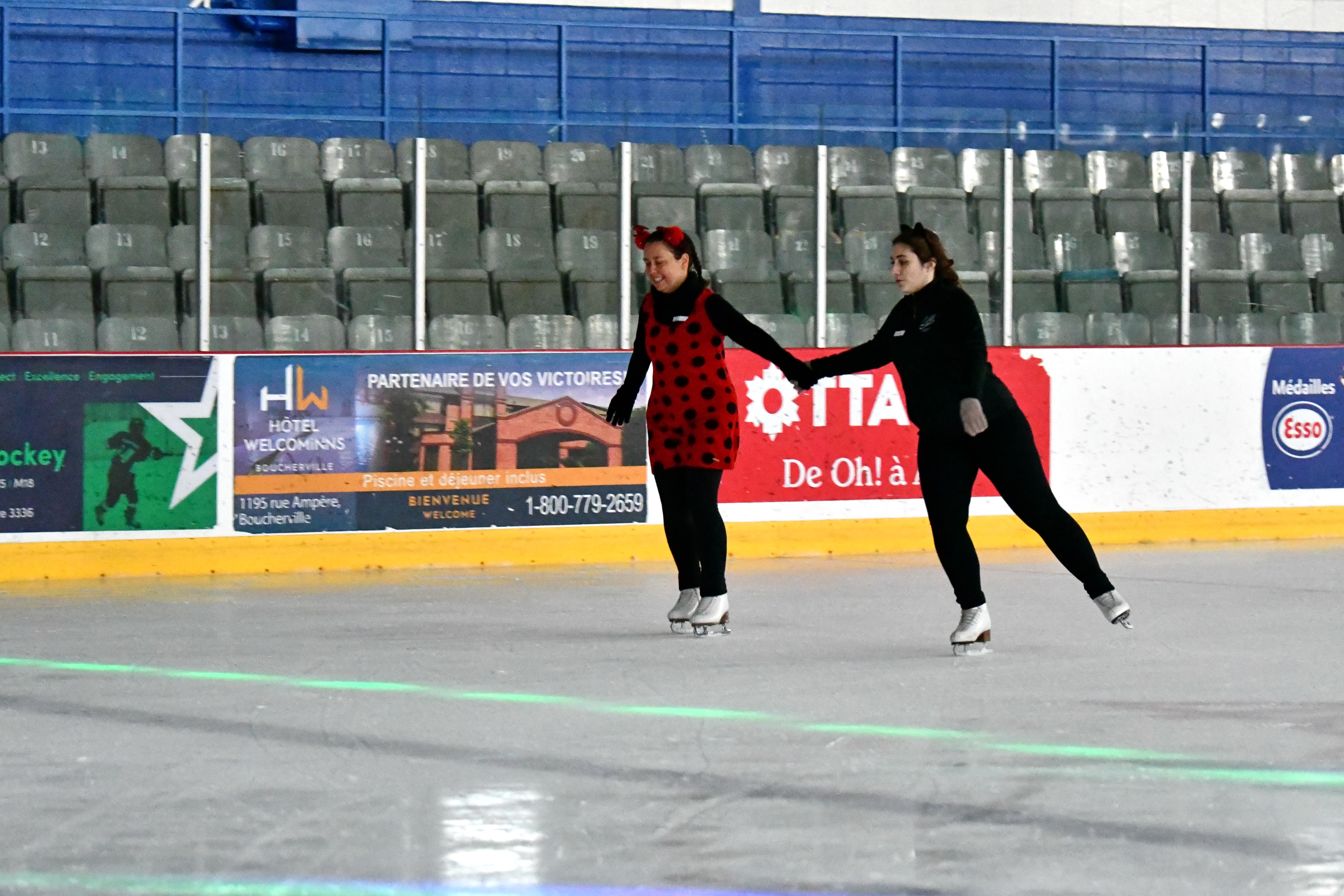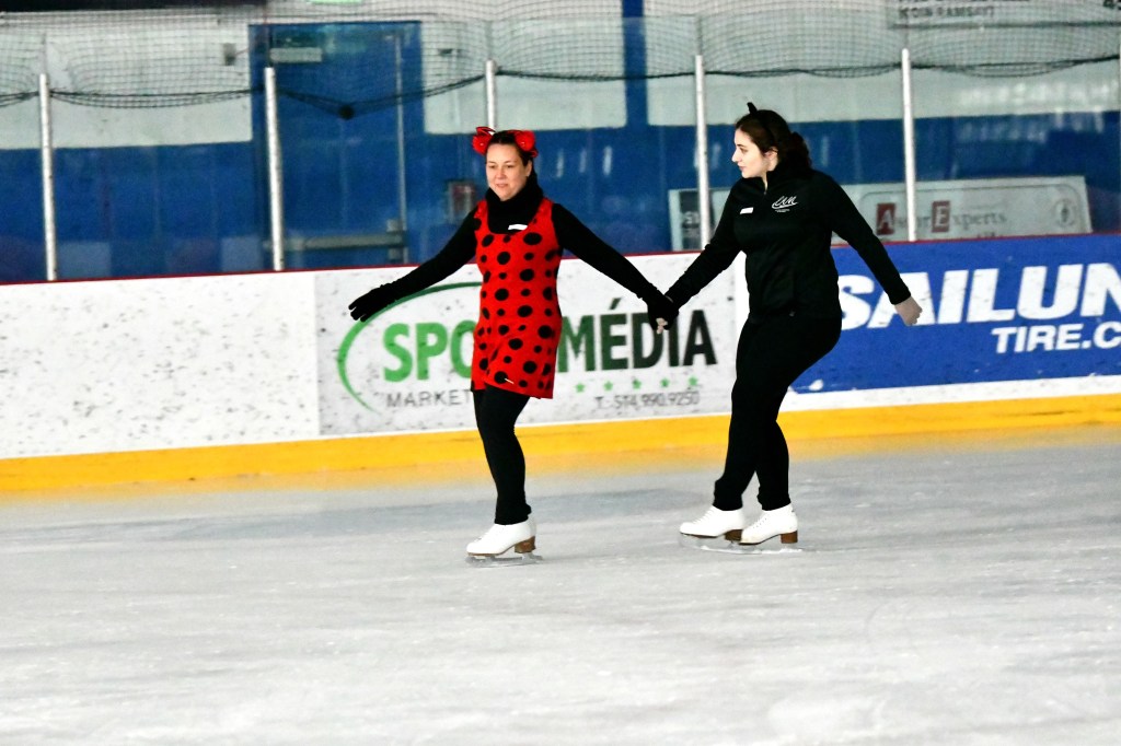 Le 26 octobre dernier, de 19h45 à 22h45, Les Lames Argentées de Montréal et le Patinage Adulte de Saint-Hubert ont uni leurs forces à l’Aréna Gaétan-Boucher (à Saint-Hubert) pour offrir une soirée inoubliable de danse sur glace ! Ce fut une soirée où les amateurs de danse sur glace, anciens et nouveaux, ont pu revisiter leurs danses imposées préférées dans une ambiance halloweenesque.
