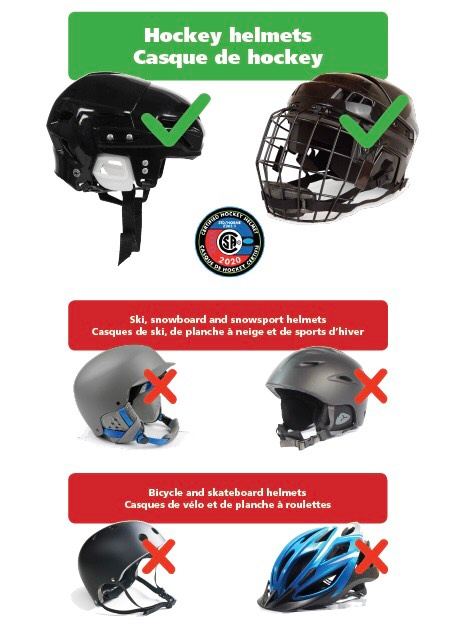 Non. Des études ont été faites et c’est le casque de hockey qui est le plus efficace lors d’une chute sur la glace. Le casque doit être approuvé par la CSA. Vous n’avez pas besoin du grillage. Le port du casque est obligatoire au début (jusqu’à l’étape 5 du programme Patinage Plus). Après cette étape, il est à votre discrétion, mais nous vous le recommandons jusqu’à ce que vos habiletés soient suffisantes et que ce soit sécuritaire pour vous.