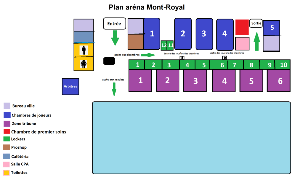 Entrées et sortie de l’aréna Mont-Royal. Notez, que nous avons accès au GRADINS seulement